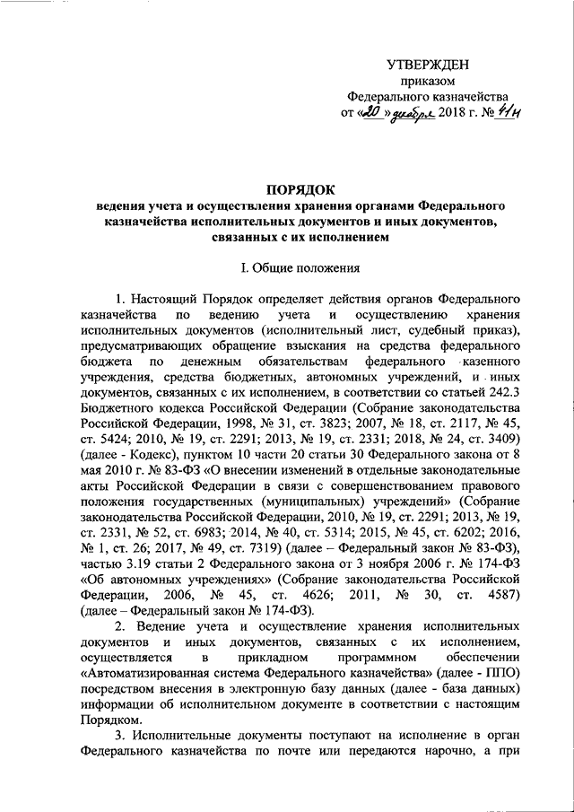 ПРИКАЗ Федерального казначейства от 20.12.2018 N 41н