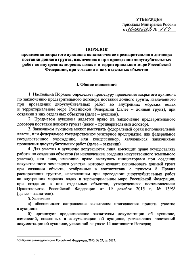 "ОБ УТВЕРЖДЕНИИ ПОРЯДКА ПРОВЕДЕНИЯ ЗАКРЫТОГО АУКЦИОНА НА ЗАКЛЮЧЕНИЕ ПРЕДВАРИТЕЛЬНОГО ДОГОВОРА ПОСТАВКИ ДОННОГО ГРУНТА, ИЗВЛЕЧЕННОГО ПРИ ПРОВЕДЕНИИ ДНОУГЛУБИТЕЛЬНЫХ РАБОТ ВО ВНУТРЕННИХ МОРСКИХ ВОДАХ И В ТЕРРИТОРИАЛЬНОМ МОРЕ РОССИЙСКОЙ ФЕДЕРАЦИИ, ПРИ СОЗДАНИИ В НИХ ОТДЕЛЬНЫХ ОБЪЕКТОВ"