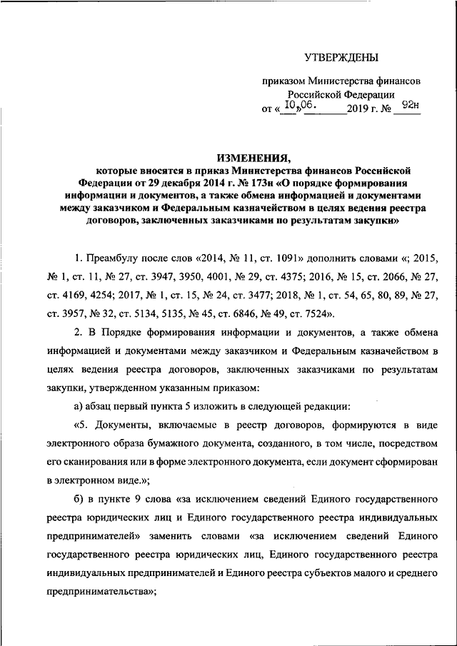 ПРИКАЗ Минфина РФ от 10.06.2019 N 92н