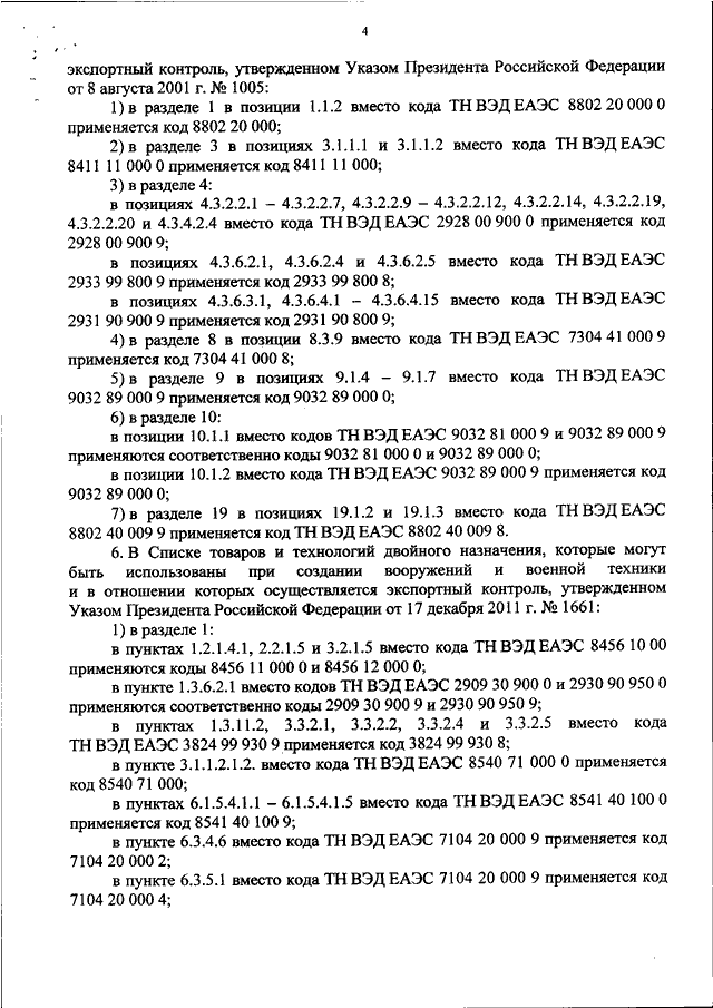 "ОБ УТОЧНЕНИИ КОДОВ ЕДИНОЙ ТОВАРНОЙ НОМЕНКЛАТУРЫ ВНЕШНЕЭКОНОМИЧЕСКОЙ ДЕЯТЕЛЬНОСТИ ЕВРАЗИЙСКОГО ЭКОНОМИЧЕСКОГО СОЮЗА, ПРИВЕДЕННЫХ В СПИСКАХ ТОВАРОВ И ТЕХНОЛОГИЙ, В ОТНОШЕНИИ КОТОРЫХ УСТАНОВЛЕН ЭКСПОРТНЫЙ КОНТРОЛЬ"