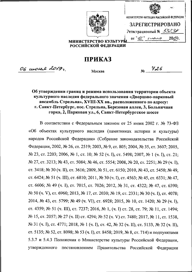 ПРИКАЗ Минкультуры РФ от 06.06.2019 N 726