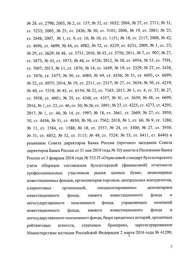 "О ВНЕСЕНИИ ИЗМЕНЕНИЙ В ПОЛОЖЕНИЕ БАНКА РОССИИ ОТ 3 ФЕВРАЛЯ 2016 Г. N 532-П "ОТРАСЛЕВОЙ СТАНДАРТ БУХГАЛТЕРСКОГО УЧЕТА "ПОРЯДОК СОСТАВЛЕНИЯ БУХГАЛТЕРСКОЙ (ФИНАНСОВОЙ) ОТЧЕТНОСТИ ПРОФЕССИОНАЛЬНЫХ УЧАСТНИКОВ РЫНКА ЦЕННЫХ БУМАГ, АКЦИОНЕРНЫХ ИНВЕСТИЦИОННЫХ ФОНДОВ, ОРГАНИЗАТОРОВ ТОРГОВЛИ, ЦЕНТРАЛЬНЫХ КОНТРАГЕНТОВ, КЛИРИНГОВЫХ ОРГАНИЗАЦИЙ, СПЕЦИАЛИЗИРОВАННЫХ ДЕПОЗИТАРИЕВ ИНВЕСТИЦИОННОГО ФОНДА, ПАЕВОГО ИНВЕСТИЦИОННОГО ФОНДА И НЕГОСУДАРСТВЕННОГО ПЕНСИОННОГО ФОНДА, УПРАВЛЯЮЩИХ КОМПАНИЙ ИНВЕСТИЦИОННОГО ФОНДА, ПАЕВОГО ИНВЕСТИЦИОННОГО ФОНДА И НЕГОСУДАРСТВЕННОГО ПЕНСИОННОГО ФОНДА, БЮРО КРЕДИТНЫХ ИСТОРИЙ, КРЕДИТНЫХ РЕЙТИНГОВЫХ АГЕНТСТВ, СТРАХОВЫХ БРОКЕРОВ"