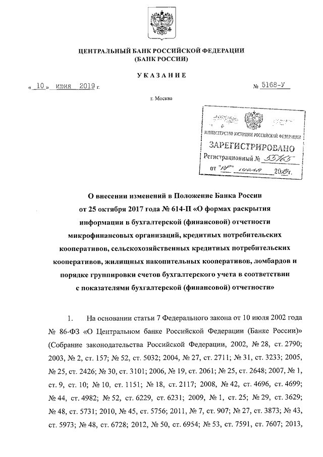 УКАЗАНИЕ ЦБ РФ от 10.06.2019 N 5168-У