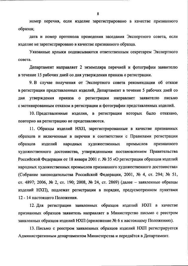 "ОБ УТВЕРЖДЕНИИ ПОЛОЖЕНИЯ О РЕГИСТРАЦИИ МИНИСТЕРСТВОМ ПРОМЫШЛЕННОСТИ И ТОРГОВЛИ РОССИЙСКОЙ ФЕДЕРАЦИИ ОБРАЗЦОВ ИЗДЕЛИЙ НАРОДНЫХ ХУДОЖЕСТВЕННЫХ ПРОМЫСЛОВ ПРИЗНАННОГО ХУДОЖЕСТВЕННОГО ДОСТОИНСТВА ПО ПРЕДСТАВЛЕНИЮ ОРГАНОВ ИСПОЛНИТЕЛЬНОЙ ВЛАСТИ СУБЪЕКТОВ РОССИЙСКОЙ ФЕДЕРАЦИИ"