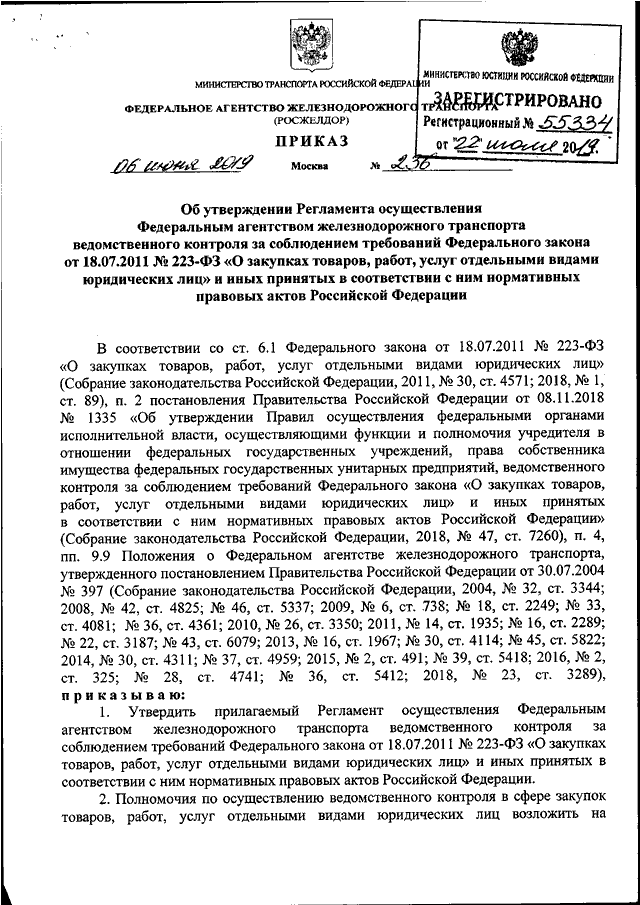 ПРИКАЗ Росжелдора от 06.06.2019 N 236