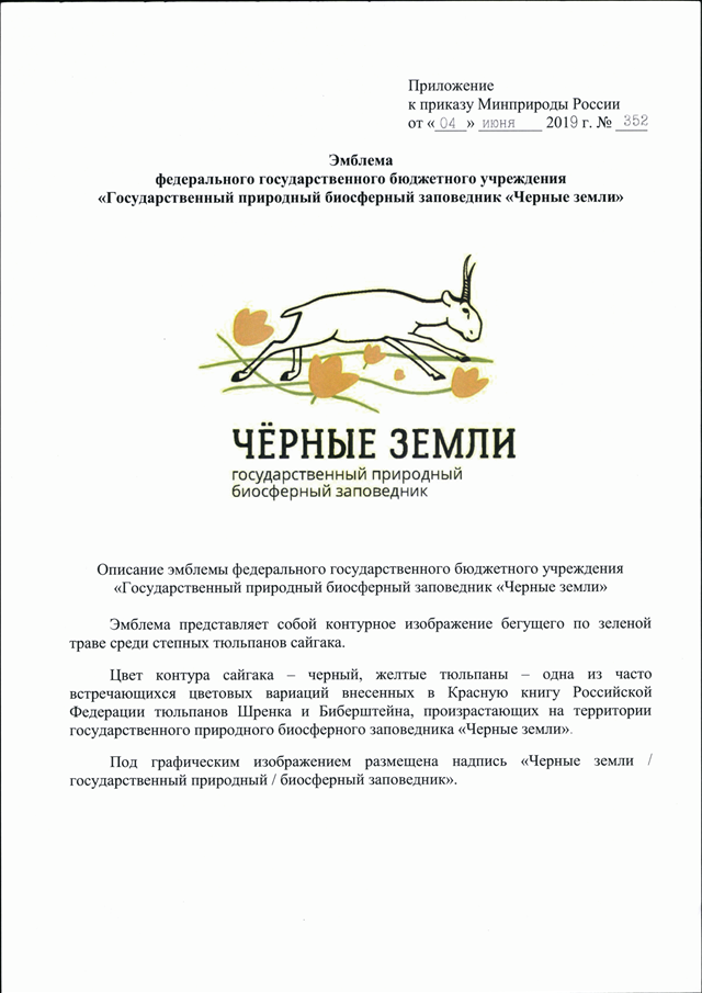 "ОБ УТВЕРЖДЕНИИ СИМВОЛИКИ ФЕДЕРАЛЬНОГО ГОСУДАРСТВЕННОГО БЮДЖЕТНОГО УЧРЕЖДЕНИЯ "ГОСУДАРСТВЕННЫЙ ПРИРОДНЫЙ БИОСФЕРНЫЙ ЗАПОВЕДНИК "ЧЕРНЫЕ ЗЕМЛИ"