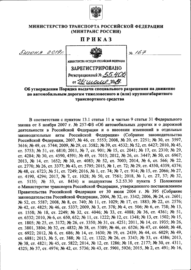 ПРИКАЗ Минтранса РФ от 05.06.2019 N 167