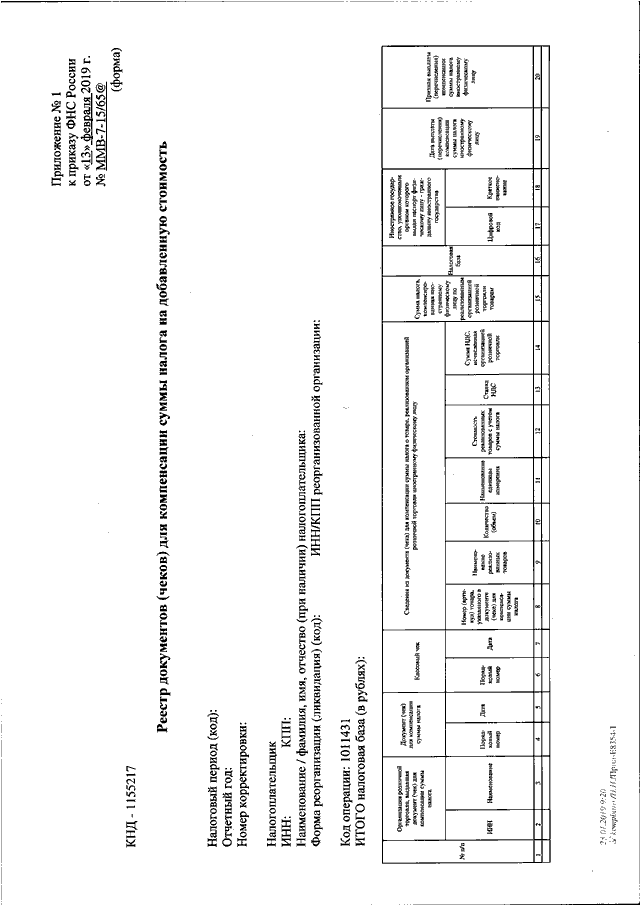 ПРИКАЗ ФНС РФ от 13.02.2019 N ММВ-7-15/65@