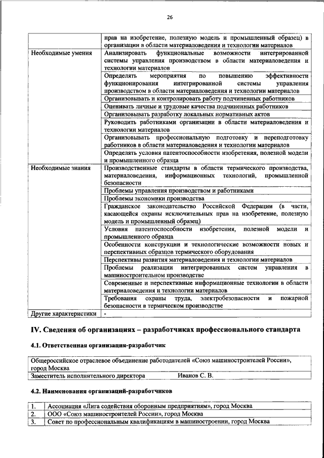 "ОБ УТВЕРЖДЕНИИ ПРОФЕССИОНАЛЬНОГО СТАНДАРТА "СПЕЦИАЛИСТ В ОБЛАСТИ РАЗРАБОТКИ, СОПРОВОЖДЕНИЯ И ИНТЕГРАЦИИ ТЕХНОЛОГИЧЕСКИХ ПРОЦЕССОВ И ПРОИЗВОДСТВ В ОБЛАСТИ МАТЕРИАЛОВЕДЕНИЯ И ТЕХНОЛОГИИ МАТЕРИАЛОВ"