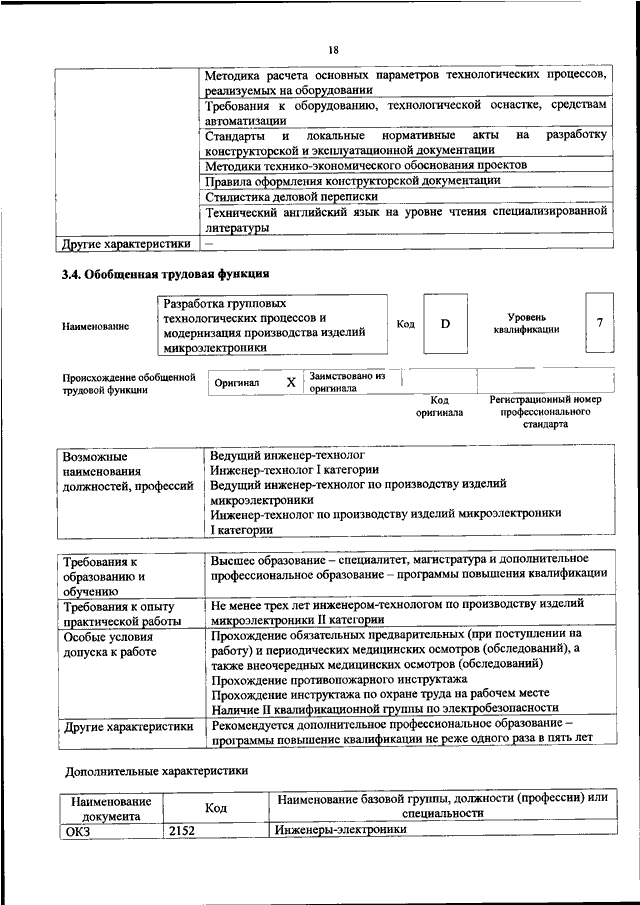 "ОБ УТВЕРЖДЕНИИ ПРОФЕССИОНАЛЬНОГО СТАНДАРТА "ИНЖЕНЕР - ТЕХНОЛОГ ПО ПРОИЗВОДСТВУ ИЗДЕЛИЙ МИКРОЭЛЕКТРОНИКИ"