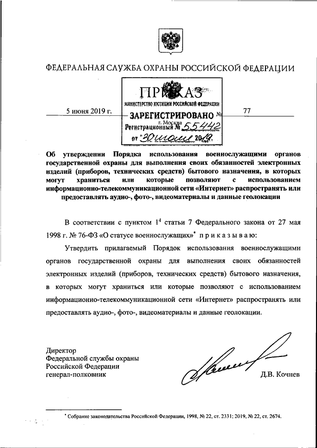 ПРИКАЗ ФСО РФ от 05.06.2019 N 77