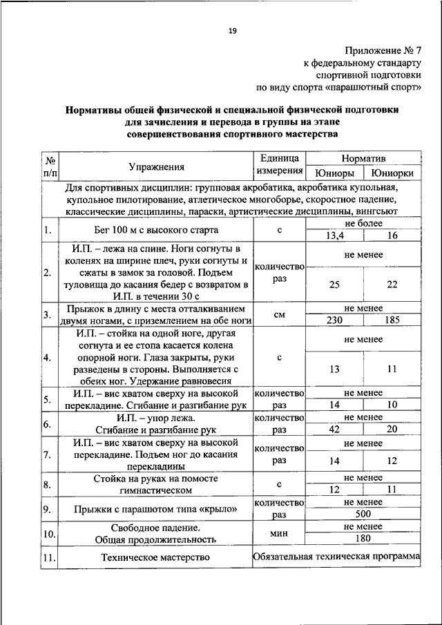 "ОБ УТВЕРЖДЕНИИ ФЕДЕРАЛЬНОГО СТАНДАРТА СПОРТИВНОЙ ПОДГОТОВКИ ПО ВИДУ СПОРТА "ПАРАШЮТНЫЙ СПОРТ"