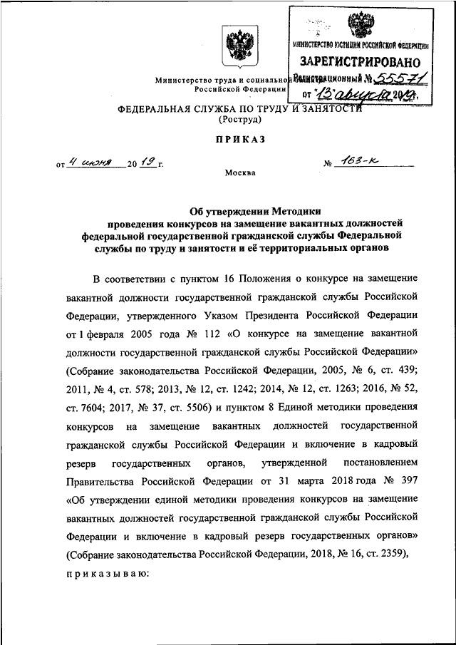 ПРИКАЗ Роструда от 04.06.2019 N 163-к