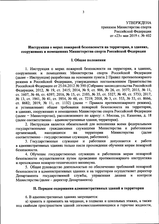 "ОБ УТВЕРЖДЕНИИ ИНСТРУКЦИИ О МЕРАХ ПОЖАРНОЙ БЕЗОПАСНОСТИ НА ТЕРРИТОРИИ, В ЗДАНИЯХ, СООРУЖЕНИЯХ И ПОМЕЩЕНИЯХ МИНИСТЕРСТВА СПОРТА РОССИЙСКОЙ ФЕДЕРАЦИИ"