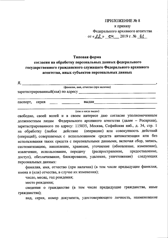 ПРИКАЗ Росархива от 22.04.2019 N 61