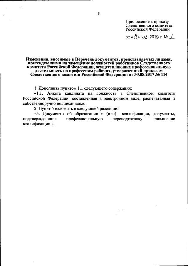 ПРИКАЗ Следственного комитета РФ от 14.01.2019 N 1