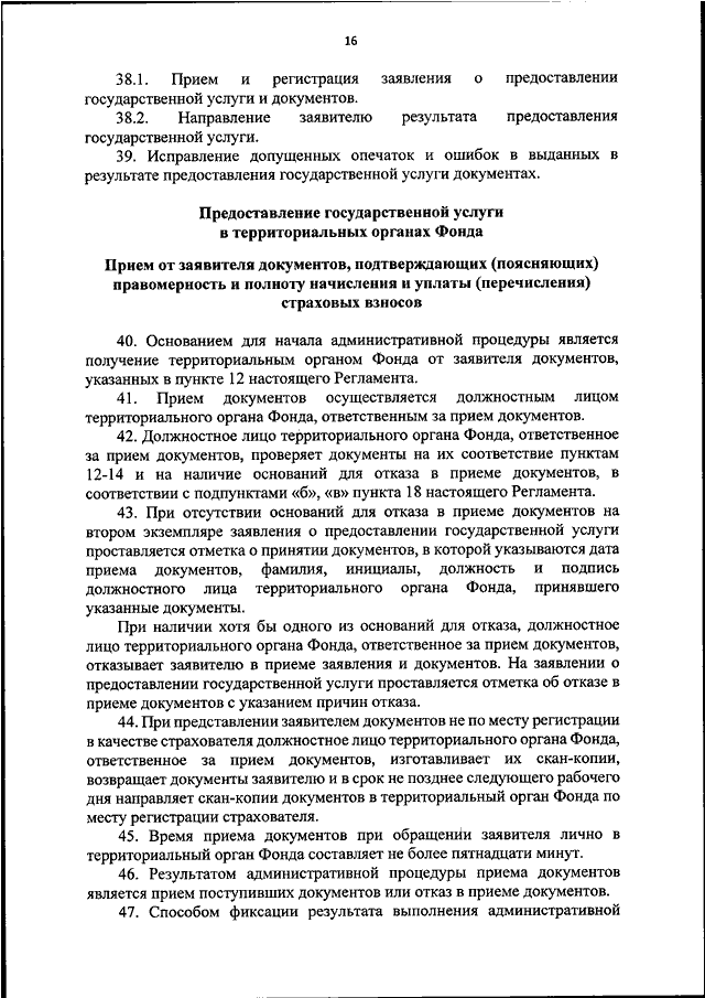 "ОБ УТВЕРЖДЕНИИ АДМИНИСТРАТИВНОГО РЕГЛАМЕНТА ФОНДА СОЦИАЛЬНОГО СТРАХОВАНИЯ РОССИЙСКОЙ ФЕДЕРАЦИИ ПО ПРЕДОСТАВЛЕНИЮ ГОСУДАРСТВЕННОЙ УСЛУГИ ПО ПРИЕМУ ДОКУМЕНТОВ, СЛУЖАЩИХ ОСНОВАНИЯМИ ДЛЯ ИСЧИСЛЕНИЯ И УПЛАТЫ (ПЕРЕЧИСЛЕНИЯ) СТРАХОВЫХ ВЗНОСОВ, А ТАКЖЕ ДОКУМЕНТОВ, ПОДТВЕРЖДАЮЩИХ ПРАВИЛЬНОСТЬ ИСЧИСЛЕНИЯ И СВОЕВРЕМЕННОСТЬ УПЛАТЫ (ПЕРЕЧИСЛЕНИЯ) СТРАХОВЫХ ВЗНОСОВ"