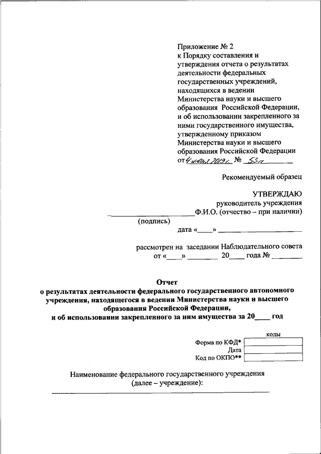 "ОБ УТВЕРЖДЕНИИ ПОРЯДКА СОСТАВЛЕНИЯ И УТВЕРЖДЕНИЯ ОТЧЕТА О РЕЗУЛЬТАТАХ ДЕЯТЕЛЬНОСТИ ФЕДЕРАЛЬНЫХ ГОСУДАРСТВЕННЫХ УЧРЕЖДЕНИЙ, НАХОДЯЩИХСЯ В ВЕДЕНИИ МИНИСТЕРСТВА НАУКИ И ВЫСШЕГО ОБРАЗОВАНИЯ РОССИЙСКОЙ ФЕДЕРАЦИИ, И ОБ ИСПОЛЬЗОВАНИИ ЗАКРЕПЛЕННОГО ЗА НИМИ ГОСУДАРСТВЕННОГО ИМУЩЕСТВА"