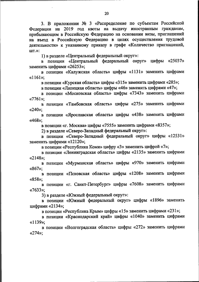 "О ВНЕСЕНИИ ИЗМЕНЕНИЙ В ПРИЛОЖЕНИЯ N 1 - 3 К ПРИКАЗУ МИНИСТЕРСТВА ТРУДА И СОЦИАЛЬНОЙ ЗАЩИТЫ РОССИЙСКОЙ ФЕДЕРАЦИИ ОТ 24 ДЕКАБРЯ 2018 Г. N 832Н "О РАСПРЕДЕЛЕНИИ ПО СУБЪЕКТАМ РОССИЙСКОЙ ФЕДЕРАЦИИ УТВЕРЖДЕННЫХ ПРАВИТЕЛЬСТВОМ РОССИЙСКОЙ ФЕДЕРАЦИИ НА 2019 ГОД КВОТ НА ВЫДАЧУ ИНОСТРАННЫМ ГРАЖДАНАМ, ПРИБЫВАЮЩИМ В РОССИЙСКУЮ ФЕДЕРАЦИЮ НА ОСНОВАНИИ ВИЗЫ, РАЗРЕШЕНИЙ НА РАБОТУ И ПРИГЛАШЕНИЙ НА ВЪЕЗД В РОССИЙСКУЮ ФЕДЕРАЦИЮ В ЦЕЛЯХ ОСУЩЕСТВЛЕНИЯ ТРУДОВОЙ ДЕЯТЕЛЬНОСТИ"