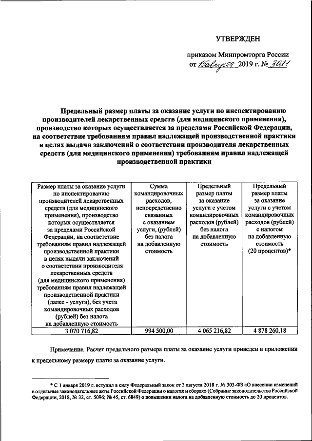 ПРИКАЗ Минпромторга РФ от 15.08.2019 N 3021