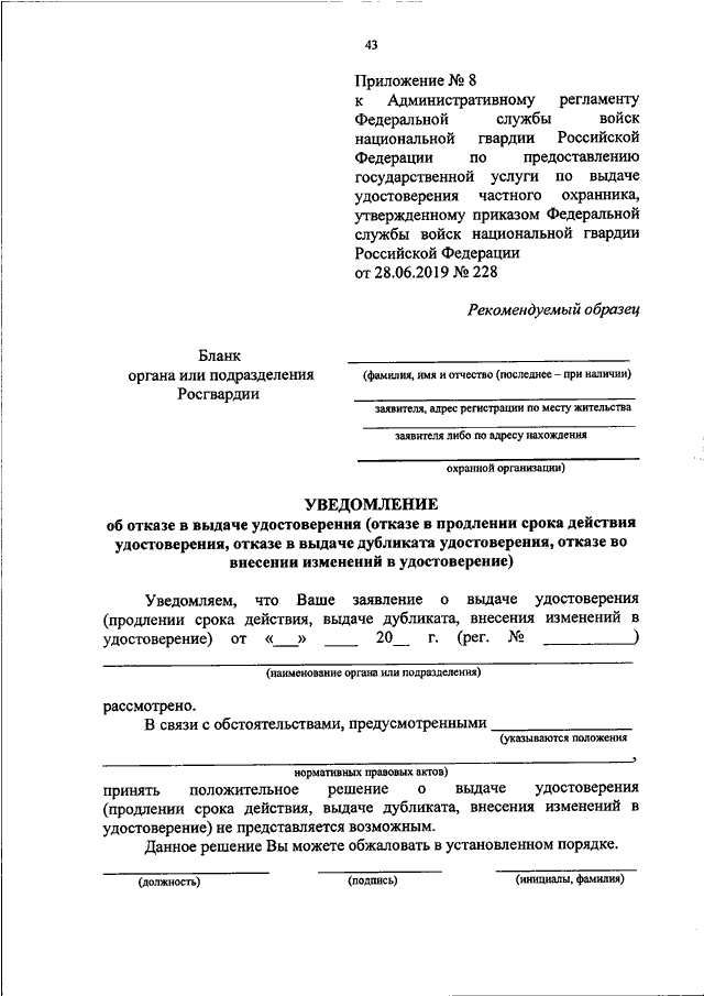 ПРИКАЗ Росгвардии от 28.06.2019 N 228