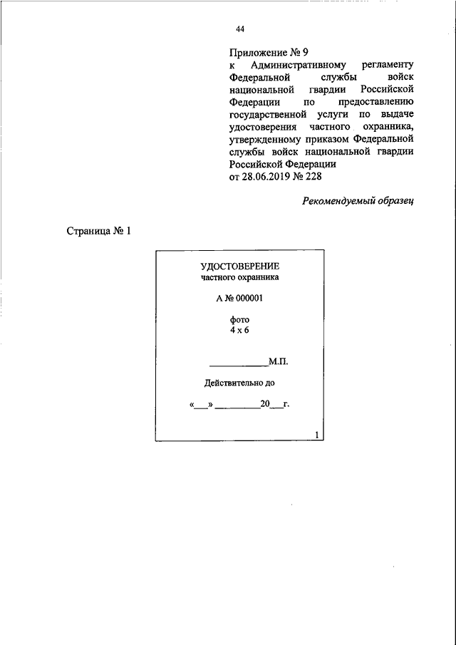 ПРИКАЗ Росгвардии от 28.06.2019 N 228