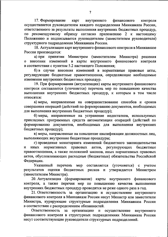 "ОБ УТВЕРЖДЕНИИ ПОЛОЖЕНИЯ ОБ ОРГАНИЗАЦИИ И ОСУЩЕСТВЛЕНИИ МИНИСТЕРСТВОМ РОССИЙСКОЙ ФЕДЕРАЦИИ ПО ДЕЛАМ СЕВЕРНОГО КАВКАЗА ВНУТРЕННЕГО ФИНАНСОВОГО КОНТРОЛЯ"