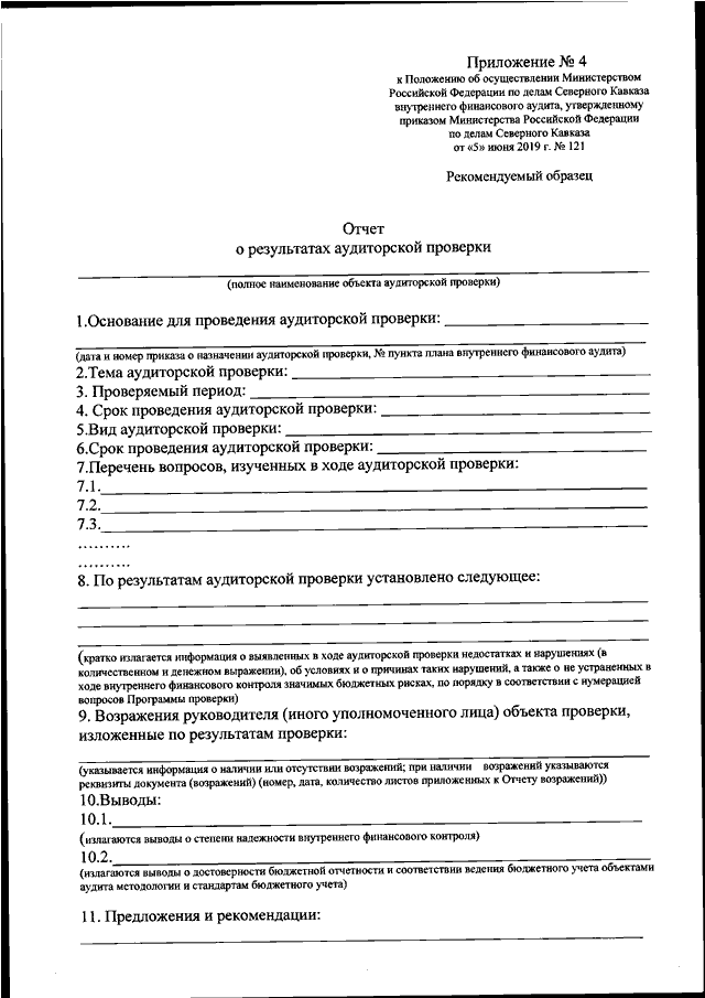 ПРИКАЗ Минкавказа России от 05.06.2019 N 121