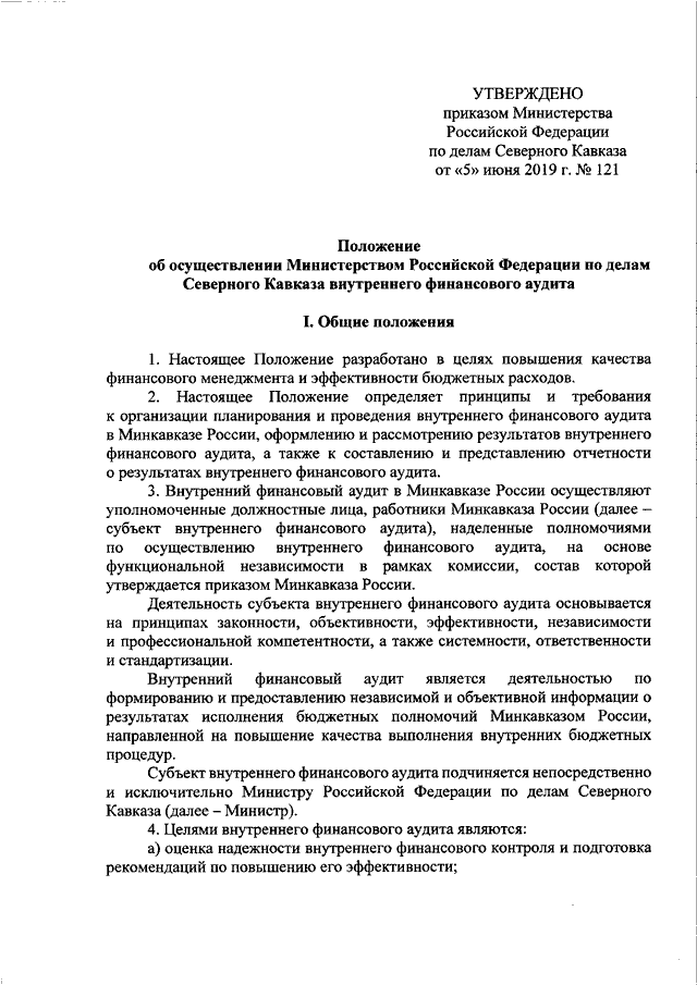 ПРИКАЗ Минкавказа России от 05.06.2019 N 121