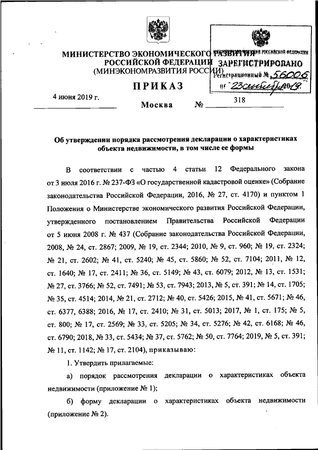 ПРИКАЗ Минэкономразвития РФ от 04.06.2019 N 318