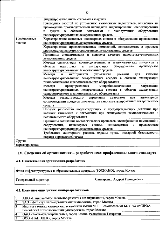 "ОБ УТВЕРЖДЕНИИ ПРОФЕССИОНАЛЬНОГО СТАНДАРТА "СПЕЦИАЛИСТ ПО ПОДГОТОВКЕ И ЭКСПЛУАТАЦИИ ОБОРУДОВАНИЯ ДЛЯ ПРОИЗВОДСТВА НАНОСТРУКТУРИРОВАННЫХ ЛЕКАРСТВЕННЫХ СРЕДСТВ"