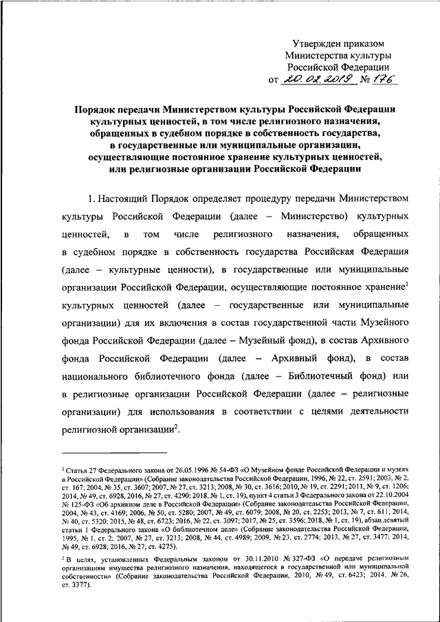 ПРИКАЗ Минкультуры РФ от 20.02.2019 N 176