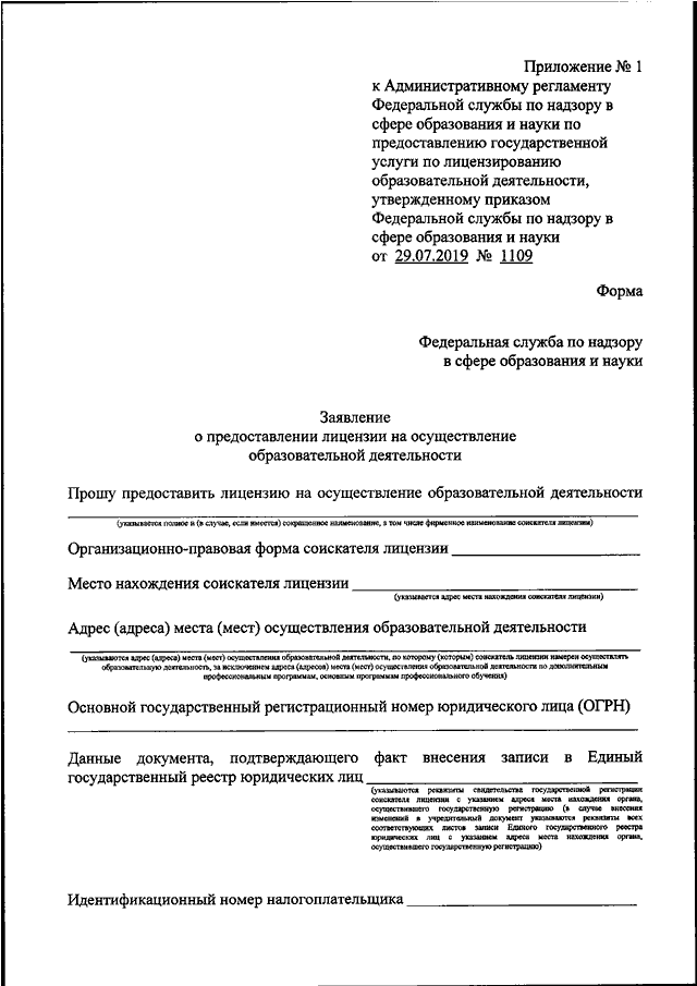 ПРИКАЗ Рособрнадзора от 29.07.2019 N 1109