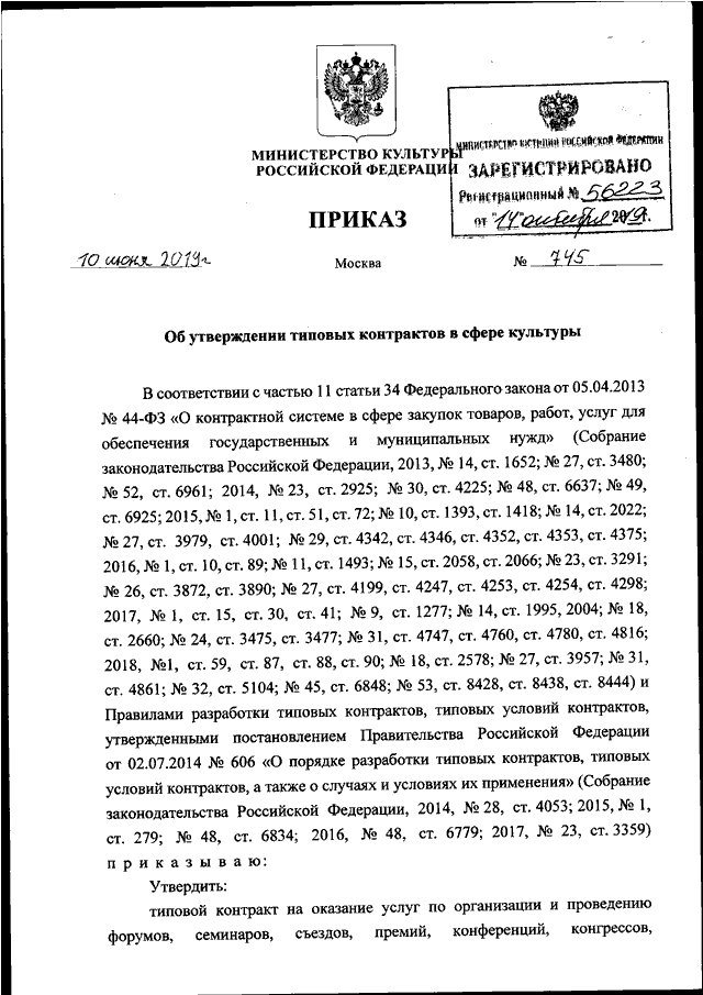 ПРИКАЗ Минкультуры РФ от 10.06.2019 N 745