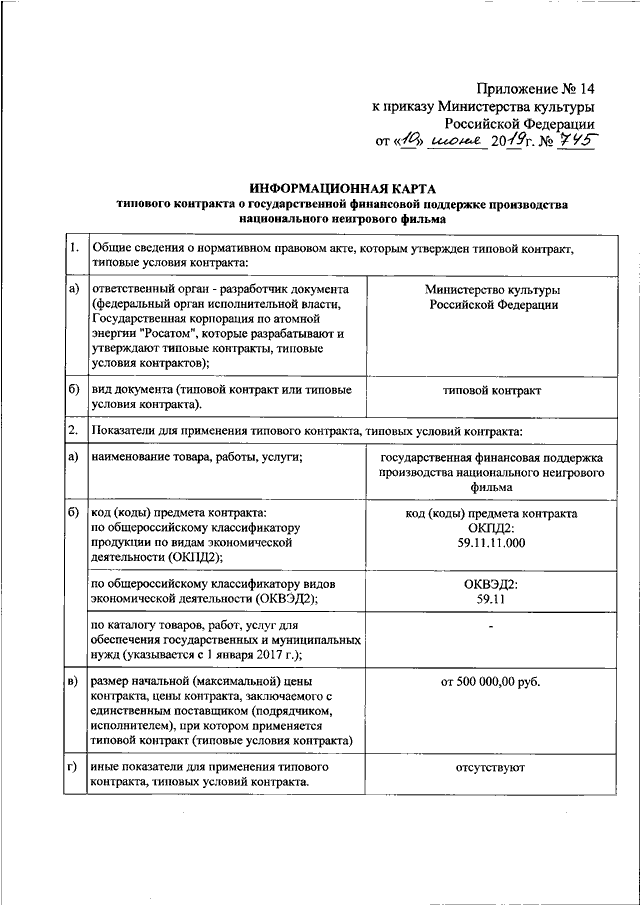 ПРИКАЗ Минкультуры РФ от 10.06.2019 N 745