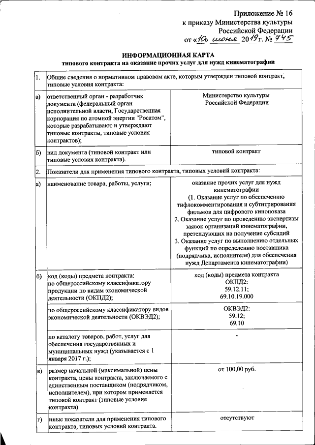 ПРИКАЗ Минкультуры РФ от 10.06.2019 N 745
