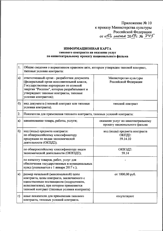 ПРИКАЗ Минкультуры РФ от 10.06.2019 N 745
