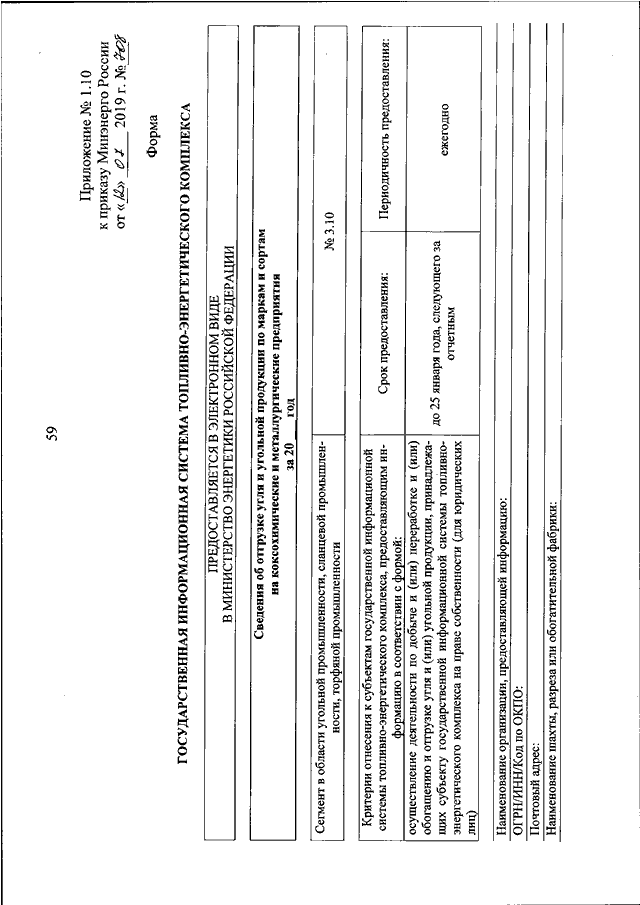 "ОБ УТВЕРЖДЕНИИ ФОРМ ПРЕДОСТАВЛЕНИЯ В ОБЯЗАТЕЛЬНОМ ПОРЯДКЕ ЮРИДИЧЕСКИМИ ЛИЦАМИ ИНФОРМАЦИИ ДЛЯ ВКЛЮЧЕНИЯ В СЕГМЕНТ В ОБЛАСТИ УГОЛЬНОЙ ПРОМЫШЛЕННОСТИ, СЛАНЦЕВОЙ ПРОМЫШЛЕННОСТИ, ТОРФЯНОЙ ПРОМЫШЛЕННОСТИ ГОСУДАРСТВЕННОЙ ИНФОРМАЦИОННОЙ СИСТЕМЫ ТОПЛИВНО - ЭНЕРГЕТИЧЕСКОГО КОМПЛЕКСА И ТРЕБОВАНИЙ К ЗАПОЛНЕНИЮ ЭТИХ ФОРМ"