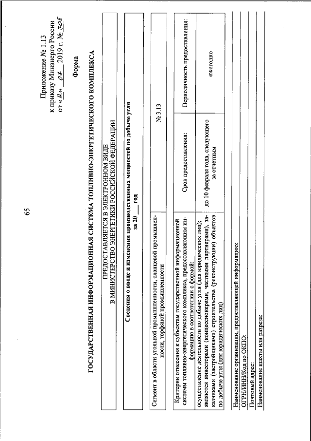 "ОБ УТВЕРЖДЕНИИ ФОРМ ПРЕДОСТАВЛЕНИЯ В ОБЯЗАТЕЛЬНОМ ПОРЯДКЕ ЮРИДИЧЕСКИМИ ЛИЦАМИ ИНФОРМАЦИИ ДЛЯ ВКЛЮЧЕНИЯ В СЕГМЕНТ В ОБЛАСТИ УГОЛЬНОЙ ПРОМЫШЛЕННОСТИ, СЛАНЦЕВОЙ ПРОМЫШЛЕННОСТИ, ТОРФЯНОЙ ПРОМЫШЛЕННОСТИ ГОСУДАРСТВЕННОЙ ИНФОРМАЦИОННОЙ СИСТЕМЫ ТОПЛИВНО - ЭНЕРГЕТИЧЕСКОГО КОМПЛЕКСА И ТРЕБОВАНИЙ К ЗАПОЛНЕНИЮ ЭТИХ ФОРМ"