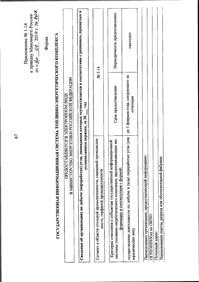 "ОБ УТВЕРЖДЕНИИ ФОРМ ПРЕДОСТАВЛЕНИЯ В ОБЯЗАТЕЛЬНОМ ПОРЯДКЕ ЮРИДИЧЕСКИМИ ЛИЦАМИ ИНФОРМАЦИИ ДЛЯ ВКЛЮЧЕНИЯ В СЕГМЕНТ В ОБЛАСТИ УГОЛЬНОЙ ПРОМЫШЛЕННОСТИ, СЛАНЦЕВОЙ ПРОМЫШЛЕННОСТИ, ТОРФЯНОЙ ПРОМЫШЛЕННОСТИ ГОСУДАРСТВЕННОЙ ИНФОРМАЦИОННОЙ СИСТЕМЫ ТОПЛИВНО - ЭНЕРГЕТИЧЕСКОГО КОМПЛЕКСА И ТРЕБОВАНИЙ К ЗАПОЛНЕНИЮ ЭТИХ ФОРМ"