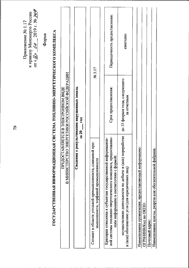 "ОБ УТВЕРЖДЕНИИ ФОРМ ПРЕДОСТАВЛЕНИЯ В ОБЯЗАТЕЛЬНОМ ПОРЯДКЕ ЮРИДИЧЕСКИМИ ЛИЦАМИ ИНФОРМАЦИИ ДЛЯ ВКЛЮЧЕНИЯ В СЕГМЕНТ В ОБЛАСТИ УГОЛЬНОЙ ПРОМЫШЛЕННОСТИ, СЛАНЦЕВОЙ ПРОМЫШЛЕННОСТИ, ТОРФЯНОЙ ПРОМЫШЛЕННОСТИ ГОСУДАРСТВЕННОЙ ИНФОРМАЦИОННОЙ СИСТЕМЫ ТОПЛИВНО - ЭНЕРГЕТИЧЕСКОГО КОМПЛЕКСА И ТРЕБОВАНИЙ К ЗАПОЛНЕНИЮ ЭТИХ ФОРМ"