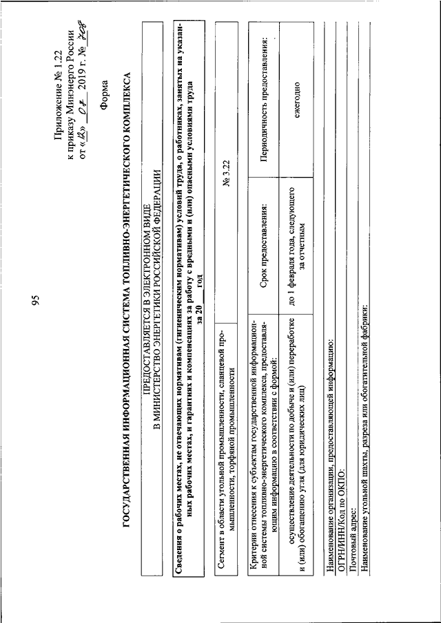 "ОБ УТВЕРЖДЕНИИ ФОРМ ПРЕДОСТАВЛЕНИЯ В ОБЯЗАТЕЛЬНОМ ПОРЯДКЕ ЮРИДИЧЕСКИМИ ЛИЦАМИ ИНФОРМАЦИИ ДЛЯ ВКЛЮЧЕНИЯ В СЕГМЕНТ В ОБЛАСТИ УГОЛЬНОЙ ПРОМЫШЛЕННОСТИ, СЛАНЦЕВОЙ ПРОМЫШЛЕННОСТИ, ТОРФЯНОЙ ПРОМЫШЛЕННОСТИ ГОСУДАРСТВЕННОЙ ИНФОРМАЦИОННОЙ СИСТЕМЫ ТОПЛИВНО - ЭНЕРГЕТИЧЕСКОГО КОМПЛЕКСА И ТРЕБОВАНИЙ К ЗАПОЛНЕНИЮ ЭТИХ ФОРМ"