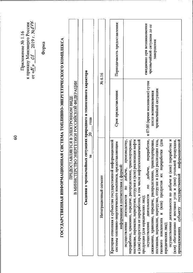 "ОБ УТВЕРЖДЕНИИ ФОРМ ПРЕДОСТАВЛЕНИЯ В ОБЯЗАТЕЛЬНОМ ПОРЯДКЕ ЮРИДИЧЕСКИМИ ЛИЦАМИ И ИНДИВИДУАЛЬНЫМИ ПРЕДПРИНИМАТЕЛЯМИ ИНФОРМАЦИИ ДЛЯ ВКЛЮЧЕНИЯ В ИНТЕГРАЦИОННЫЙ СЕГМЕНТ ГОСУДАРСТВЕННОЙ ИНФОРМАЦИОННОЙ СИСТЕМЫ ТОПЛИВНО - ЭНЕРГЕТИЧЕСКОГО КОМПЛЕКСА И ТРЕБОВАНИЙ К ЗАПОЛНЕНИЮ ЭТИХ ФОРМ"