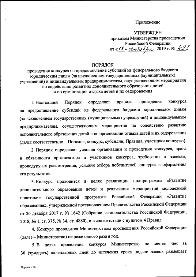 ПРИКАЗ Минпросвещения России от 18.09.2019 N 498