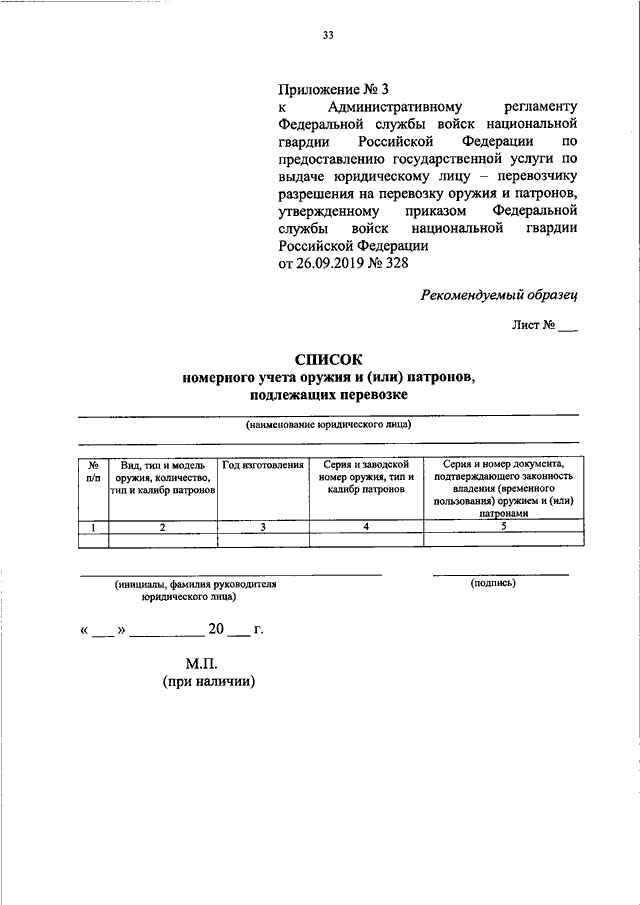 ПРИКАЗ Росгвардии от 26.09.2019 N 328