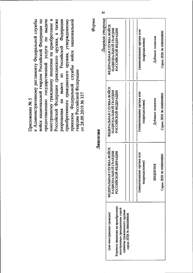 ПРИКАЗ Росгвардии от 28.09.2019 N 337