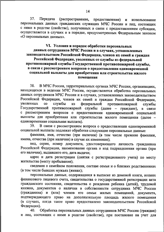 "ОБ ОБРАБОТКЕ И ОБЕСПЕЧЕНИИ ЗАЩИТЫ ПЕРСОНАЛЬНЫХ ДАННЫХ В МИНИСТЕРСТВЕ РОССИЙСКОЙ ФЕДЕРАЦИИ ПО ДЕЛАМ ГРАЖДАНСКОЙ ОБОРОНЫ, ЧРЕЗВЫЧАЙНЫМ СИТУАЦИЯМ И ЛИКВИДАЦИИ ПОСЛЕДСТВИЙ СТИХИЙНЫХ БЕДСТВИЙ"
