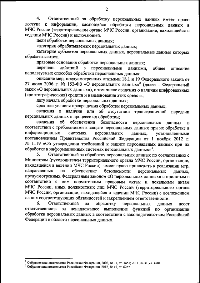 "ОБ ОБРАБОТКЕ И ОБЕСПЕЧЕНИИ ЗАЩИТЫ ПЕРСОНАЛЬНЫХ ДАННЫХ В МИНИСТЕРСТВЕ РОССИЙСКОЙ ФЕДЕРАЦИИ ПО ДЕЛАМ ГРАЖДАНСКОЙ ОБОРОНЫ, ЧРЕЗВЫЧАЙНЫМ СИТУАЦИЯМ И ЛИКВИДАЦИИ ПОСЛЕДСТВИЙ СТИХИЙНЫХ БЕДСТВИЙ"