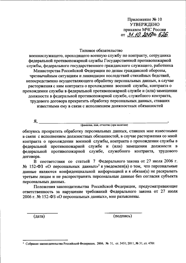 ПРИКАЗ МЧС РФ от 31.10.2019 N 626