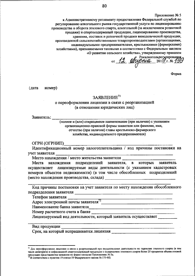 ПРИКАЗ Росалкогольрегулирования от 12.08.2019 N 199